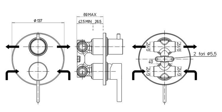 • Встраиваемый монтаж скрывает все соединения и оставляет на виду только рычаг управления, экономя пространство.