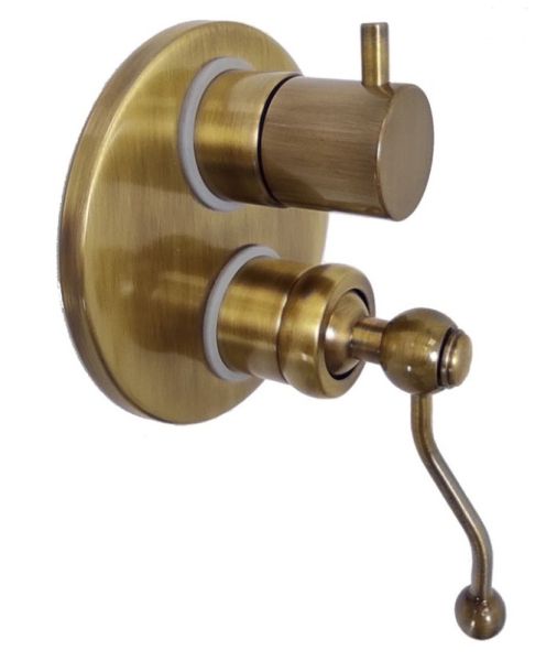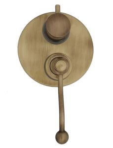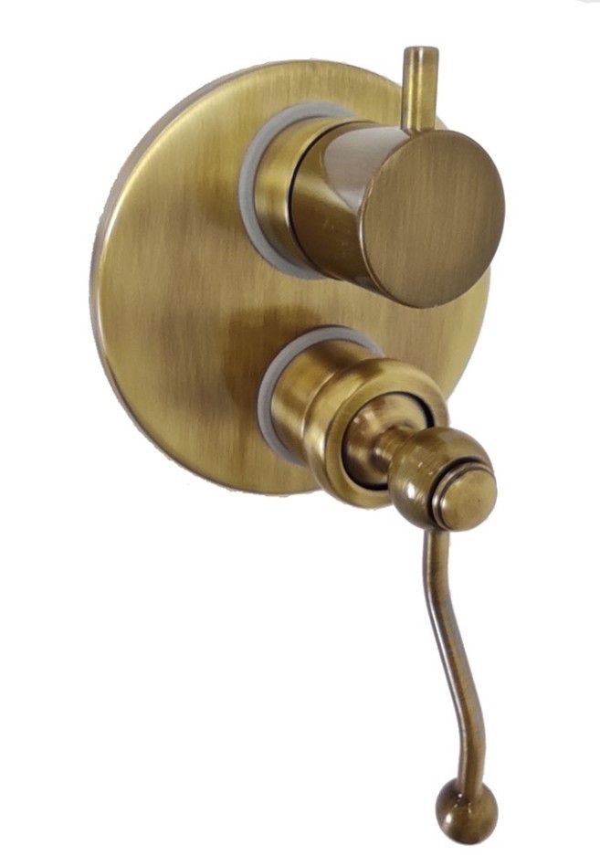 Встраиваемый смеситель для душа с дивертором внесет в ванную комнату элемент ретро, на виду останется только рычаг затейливой формы. Смеситель позволяет распределить поток воды на два выхода и подключить несколько устройств, например, верхний душ и ручную лейку. Встраиваемая сантехника PAINI поставляется в полном сборе - внутренняя и внешняя часть.