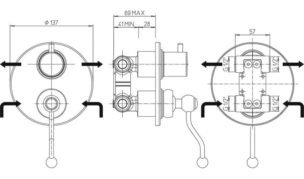 • Встраиваемый монтаж скрывает все соединения и оставляет на виду только рычаг управления, экономя пространство.