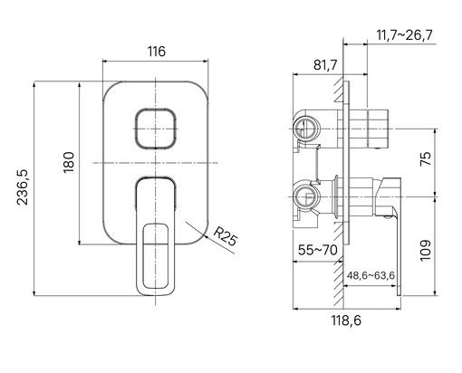Встраиваемый в стену смеситель Slide в черном цвете для ванны или душевой зоны – стильное современное решение для ванной комнаты. Предназначен для подключения трех душевых аксессуаров на ваш выбор.