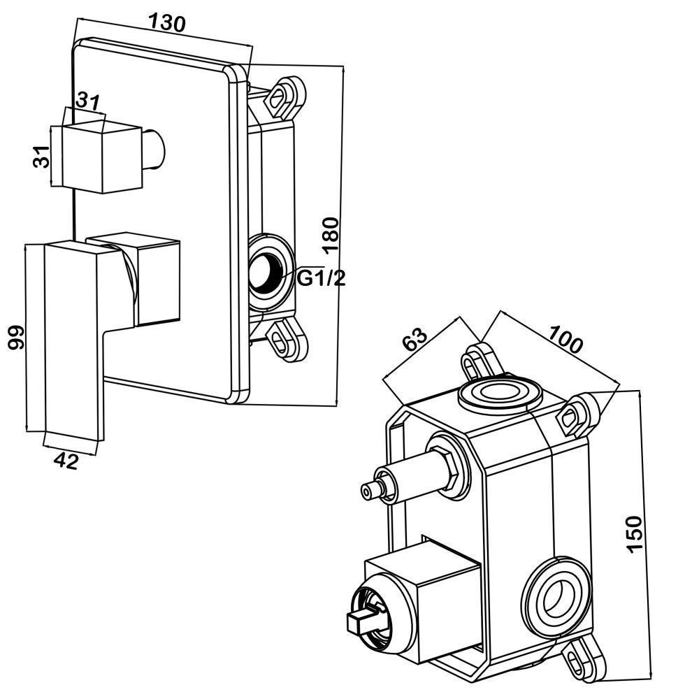 Смеситель Swedbe Platta 5519Cмеситель встраиваемый с подключением на 2 выхода. Полный комплект установки (комплект скрытого монтажа и наружная часть смесителя). Керамический картридж Sedal. Керамический дивертор. Смеситель изготовлен из гигиенически стабильной латуни с высоким содержанием меди.