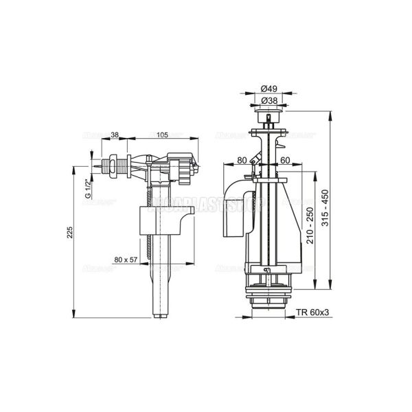 Выпускной комплект с двойной кнопкой AlcaPlast SA08S 1/2" CHROM купить