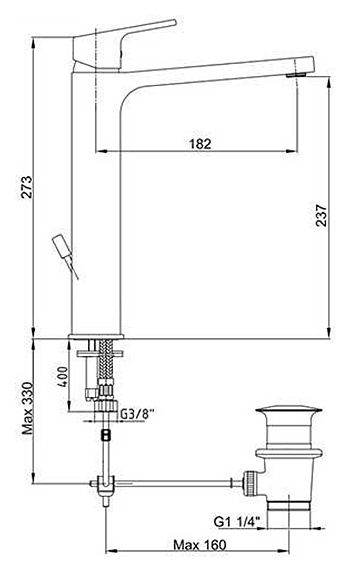 Высокий смеситель для раковины E.C.A. Tiera 102188014EX с донным клапаном хром