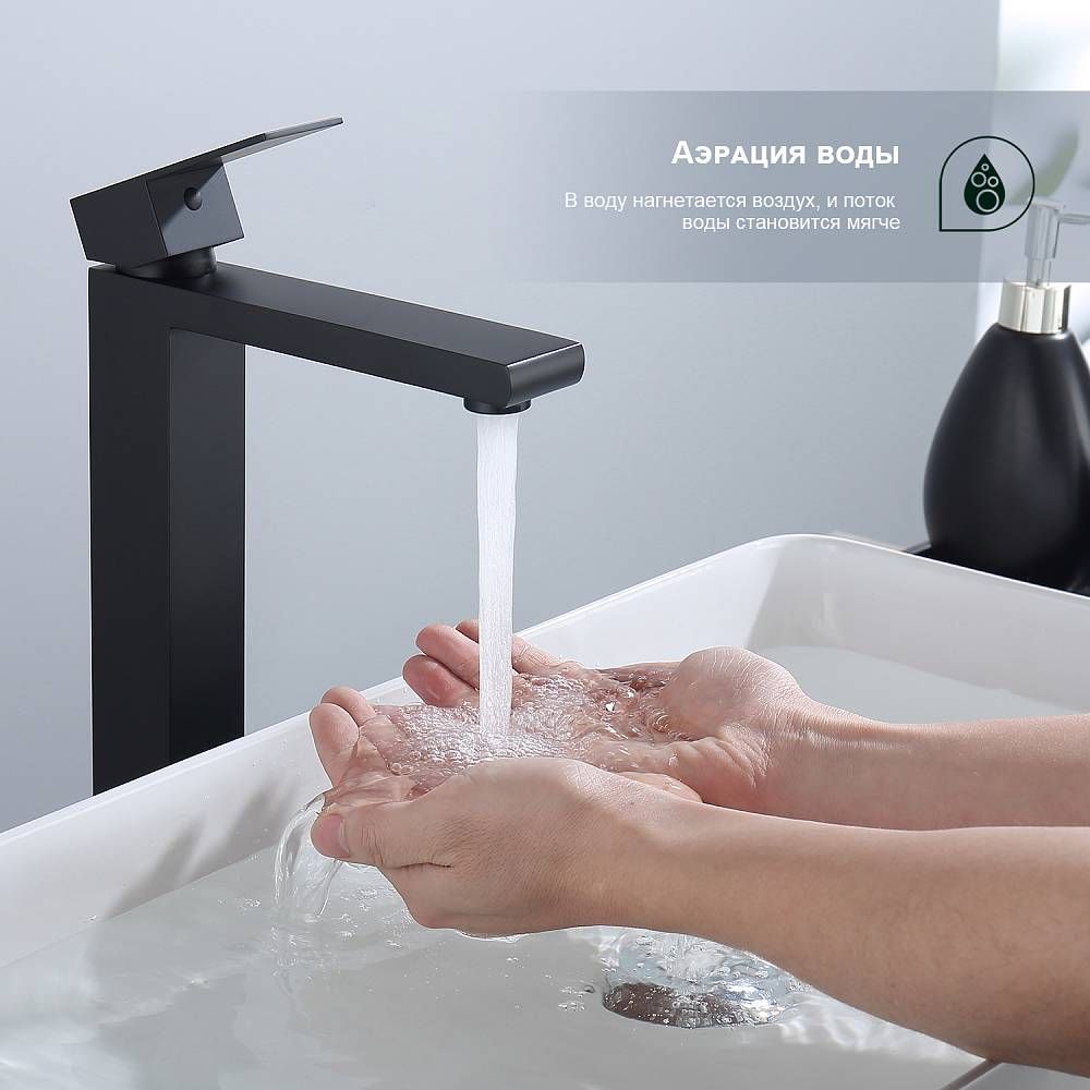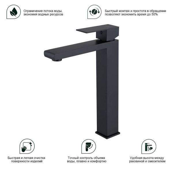 Смеситель для раковины Splenka S224.15.06, черный. Смеситель высокий для раковины нержавеющая сталь, квадратной формы. Смеситель с креплением на гайке. Все для монтажа и эксплуатации есть в комплекте. Гарантия 5 лет.