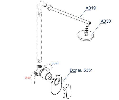 Wasserkraft А12030 Встраиваемый комплект для душа с верхней душевой насадкой