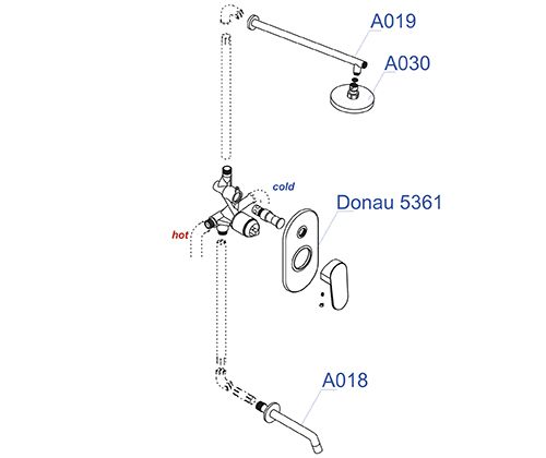 Wasserkraft А13030 Встраиваемый комплект для ванны с изливом и верхней душевой насадкой