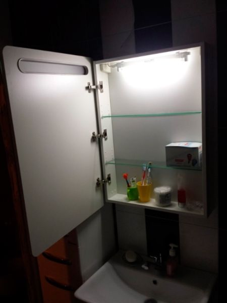 Модель Америна имеет строгие формы, прямые линии и скругленные углы. Зеркальное полотно с влагостойкой амальгамой. За зеркальной створкой располагаются две стеклянные полки и светильник, который виден сквозь гравировку. Фасад установлен на мощные петли со встроенным амортизатором – при закрывании не будет слышно удара, даже если сильно толкнуть дверцу.Зеркало-шкаф Акватон Америна 60 L восхитительно подойдет как для просторной ванной комнаты, так и для небольшого помещения.В производстве используют только качественные влагостойкие материалы, в составе которых полностью отсутствуют опасные вещества. Серия Америна отличается превосходным дизайном с соблюдением всех важных элементов современного стиля. Основным цветом, в котором выполнено шкаф-зеркало Акватон Америна является белый, гармонирующий с большинством интерьерных решений. Шкаф-зеркало предусматривает удобную и вместительную систему хранения, состоящую из дверей. Качественные доводчики позволяют обеспечить мягкое и тихое закрывание. Важные размеры товара: ширина 60.6 см, глубина 14 см, высота 81 см. Зеркало Акватон Америна оснащено подсветкой, позволяющей комфортно провести утренние процедуры.Страной бренда Акватон является Россия, все товары производятся с выполнением соответствующих стандартов качества, что позволяет быть полностью уверенными в долговечности и надежности. Зеркало-шкаф Акватон Америна 60 L правильный выбор в современном дизайне ванной, придающий уникальность всему помещению, при этом сохраняя функциональность.