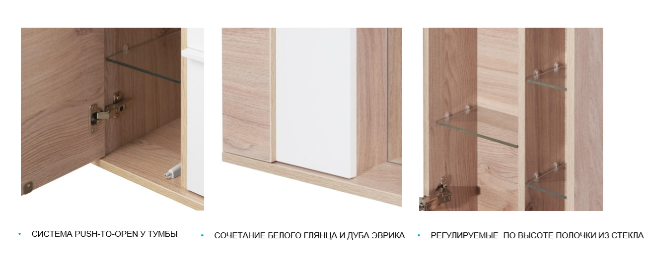Зеркальный шкаф Акватон Бостон 75см белый/дуб эврика 1A240302BN010