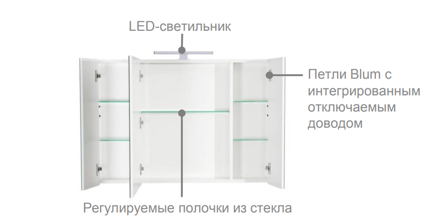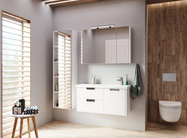 Зеркальный шкаф Roca Enta 7857305806 100 см белый Зеркальный шкаф:- LED-светильник- петли Blum c плавным доводом- регулируемые полочки из стекла Стилистика интерьера:- минимализм- скандинавский стиль