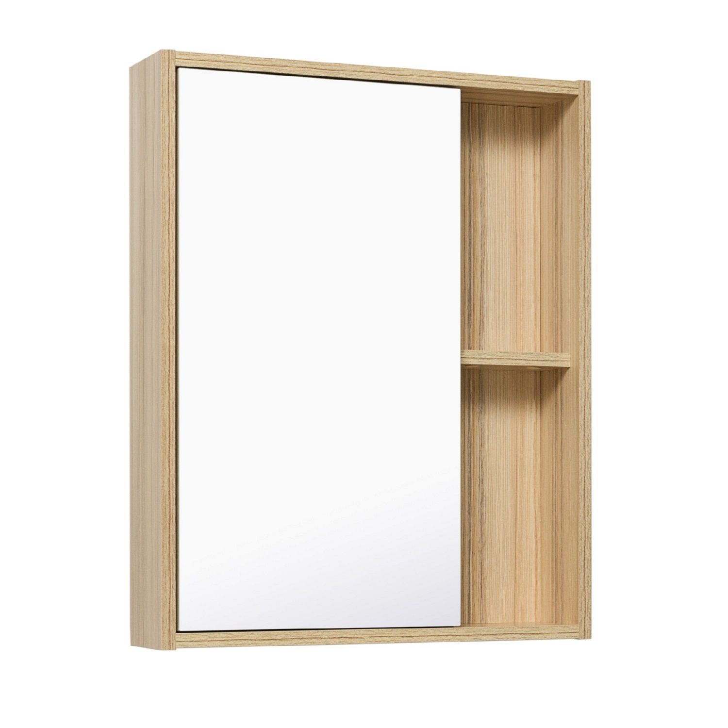 Зеркальный шкаф без подсветки с одной распашной дверкой и открытыми полками (слева или справа, за... Подробнее