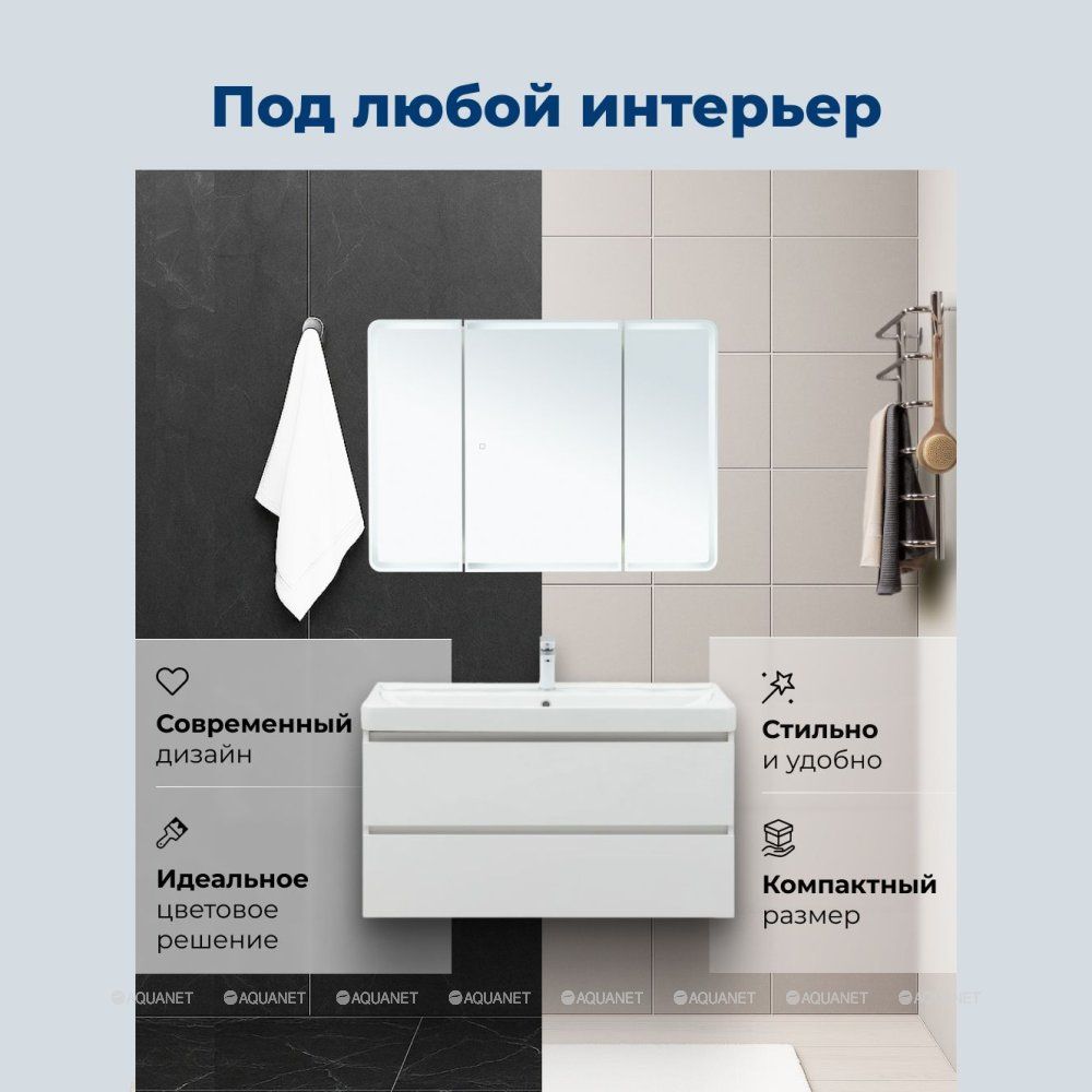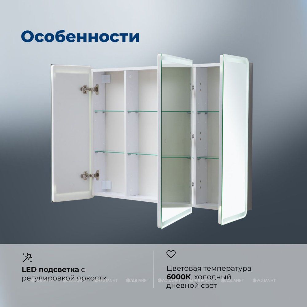Зеркальный шкаф Aquanet Оптима 110 с LED подсветкой — это умное решение для вашей ванной. Он сочетает элегантный внешний вид, продуманную эргономику и передовые технологии. С ним ваше утро станет ярче, а вечер — комфортнее.