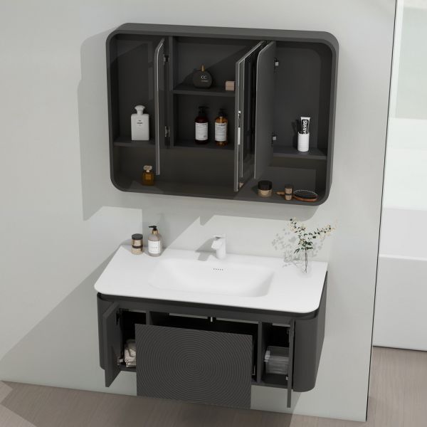 Зеркальный ящик из коллекции U 930 компании Black&White. Корпус изготовлен из влагостойкой девятислойной фанеры и окрашен эмалью, а отсутствие острых углов по периметру пересекается с концепцией основной тумбы. Для хранения косметических принадлежностей предусмотрены три распашных ящика с зеркальными фасадами, а также открытая полочка в ширину всего изделия. Петли для открывания фасадов установлены фирмы UniHopper.Зеркальный ящик U 930– готовое решение для хранения гигиенических принадлежностей и наполнения стилем Вашей ванной комнаты.