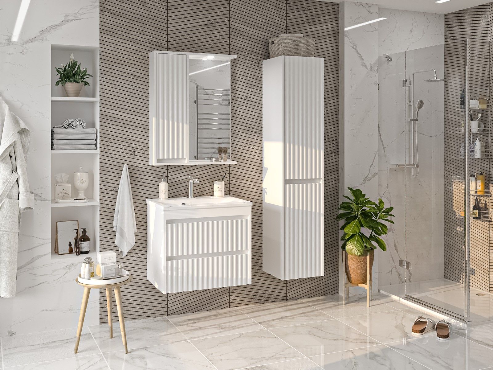 Зеркальный шкаф для ванной комнаты – это стильный акцент, который может преобразить любое пространство. С его элегантными линиями и продуманным дизайном, он идеально вписывается в современный интерьер. Внешняя поверхность шкафа, выполненная из качественных материалов, отражает свет, создавая ощущение простора и уюта.Внутреннее содержание шкафа умело организовано: разнообразные полки и отсеки позволяют удобно разместить все необходимые аксессуары – от косметики до бытовой химии. Зеркало, интегрированное в фасад, визуально расширяет пространство и облегчает утренние рутинные процедуры.Зеркальный шкаф для ванной комнаты – это идеальное сочетание красоты и практичности, которое станет незаменимым помощником в вашем дневном ритме.