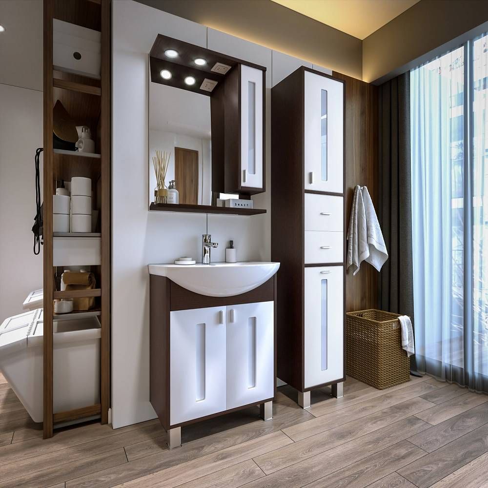 Зеркальный шкаф с подсветкой Бриклаер Бали 4627125411823 правый 62 см венге/белый купить