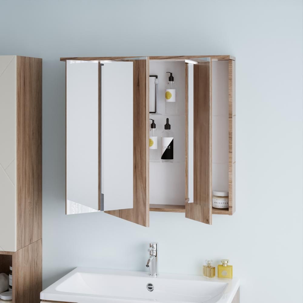 Зеркальный шкаф с подсветкой Бриклаер Кристалл 4627125417207 75 см дуб крафт табачный купить