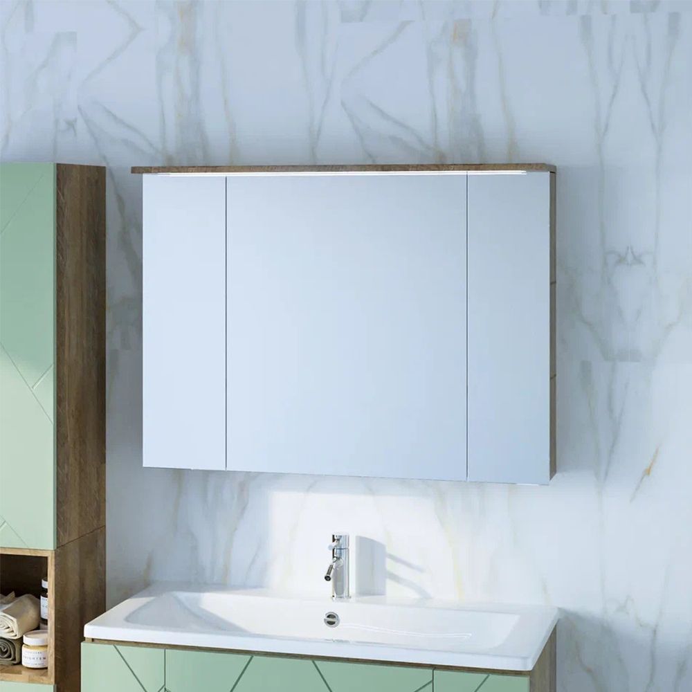 Зеркальный шкаф с подсветкой Бриклаер Кристалл 4627125417245 95 см дуб гранж песочный