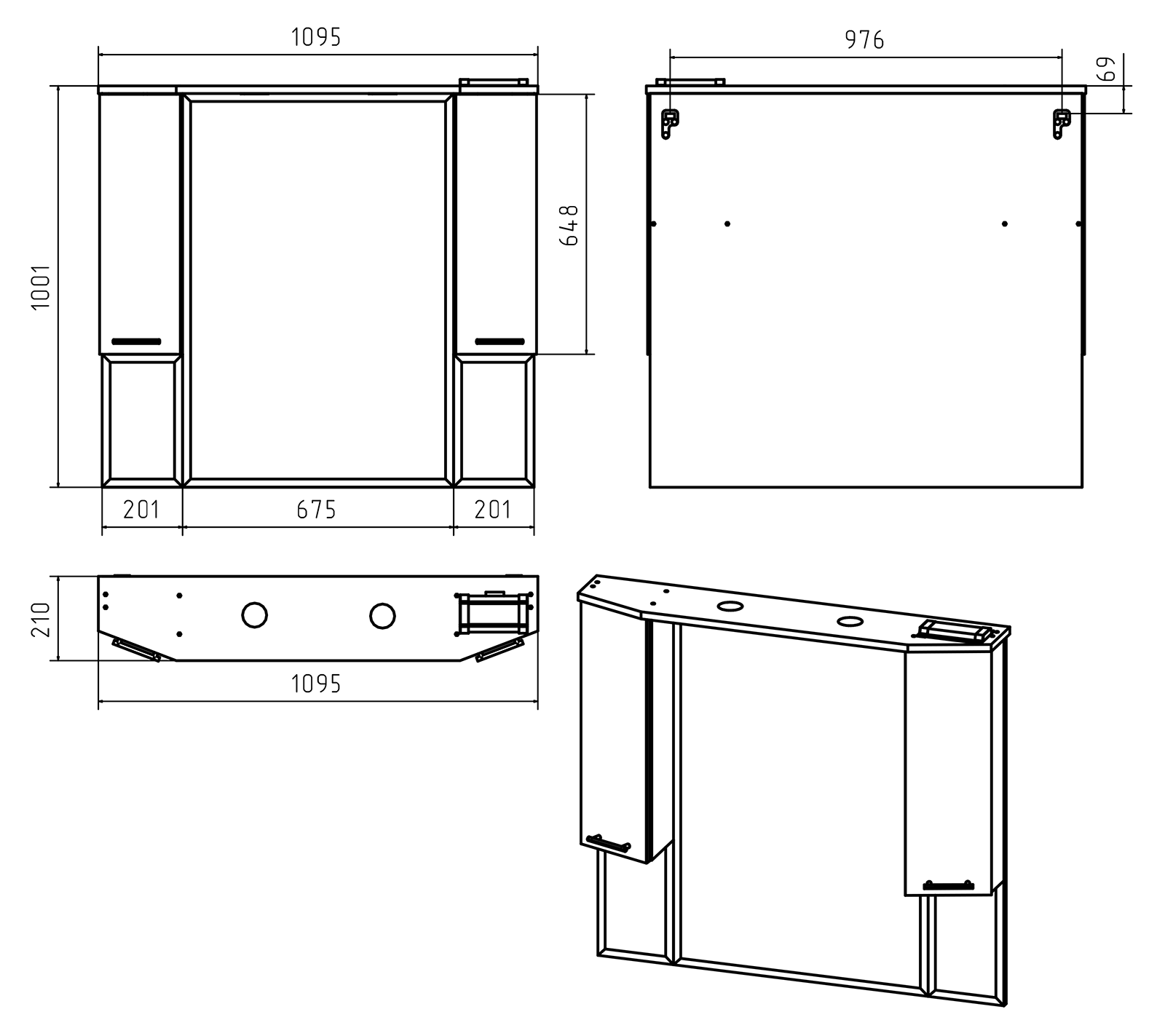 Зеркальный шкаф с подсветкой Misty Терра 110см серый