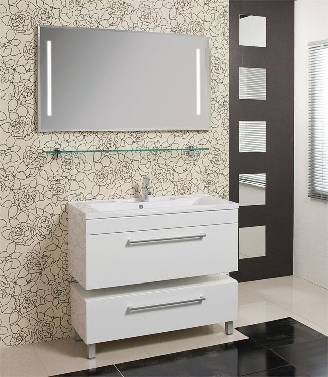Прекрасное зеркало для просторной ванной комнаты. Есть подсветка