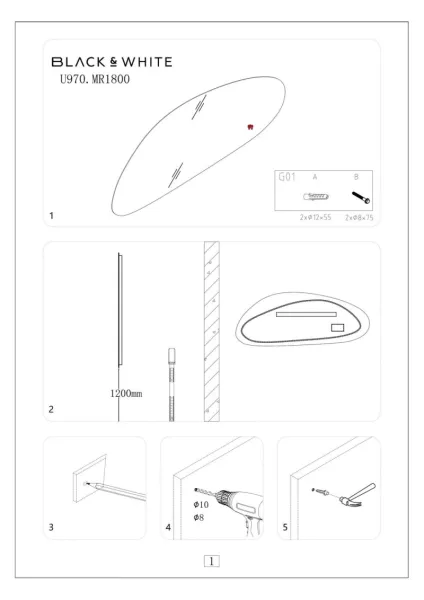Зеркало Black&White Universe 970.MR1800 180 см