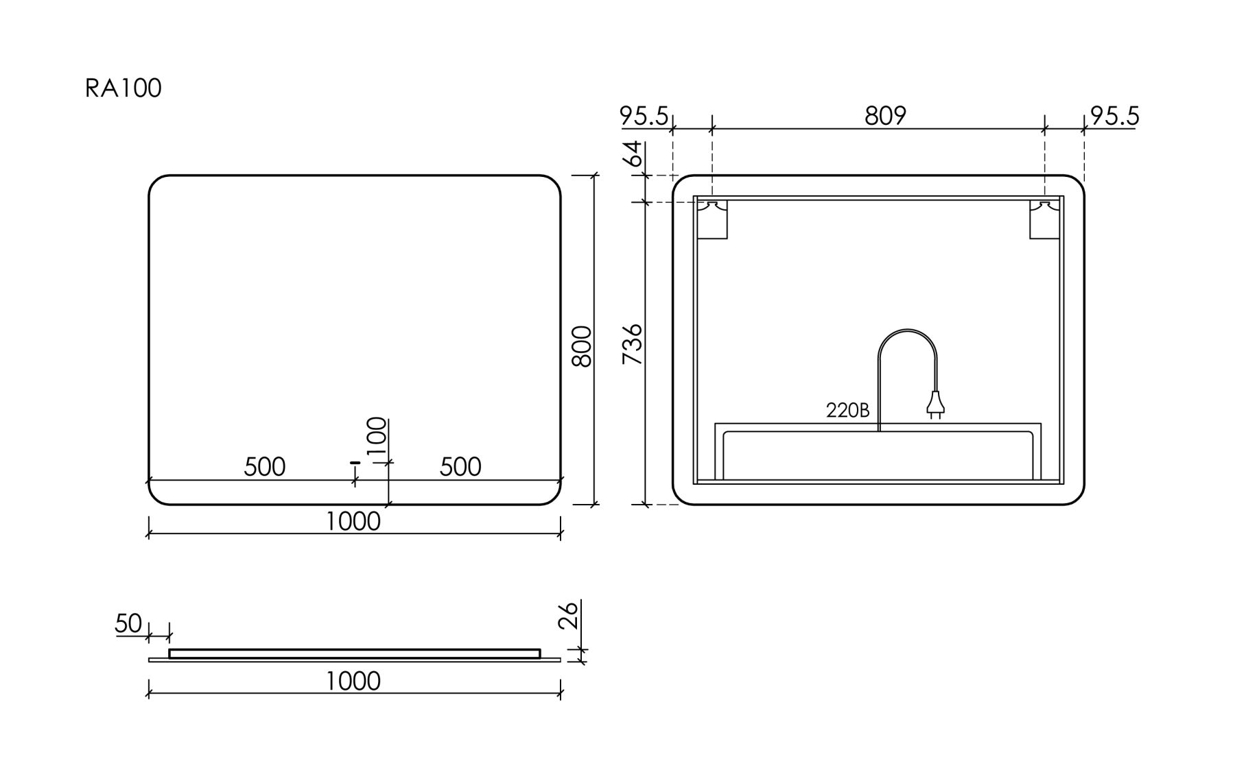 Зеркало c подсветкой Sancos Ray RA1000 100 см
