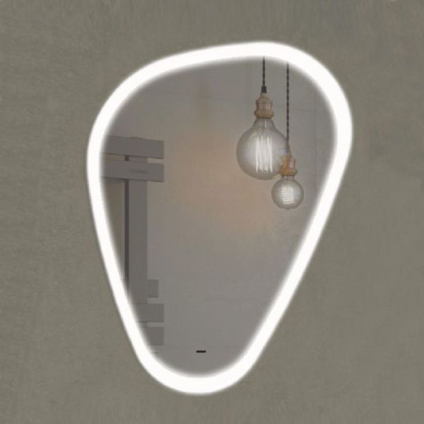 Зеркало Comforty 00-00014342 70 смЗеркало Олеандр 70 Габариты (ШхВхГ): 700*900*30 мм Зеркало оснащено встроенным светодиодным светильником создающим ореольное свечение на стене и бесконтактным сенсором включения подсветки. Высококачественное зеркальное полотно с амальгамой на основе серебра. Асимметричное треугольное зеркало для ванной комнаты закругл