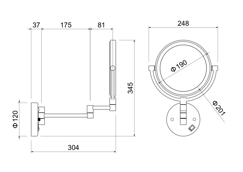 Зеркало косметическое настенное Aquatek AQ4912BGM с подсветкой 5х шлифованный чёрный хром купить