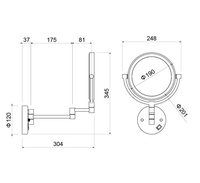 Зеркало косметическое настенное Aquatek AQ4915BGM с подсветкой 5х шлифованный чёрный хром купить