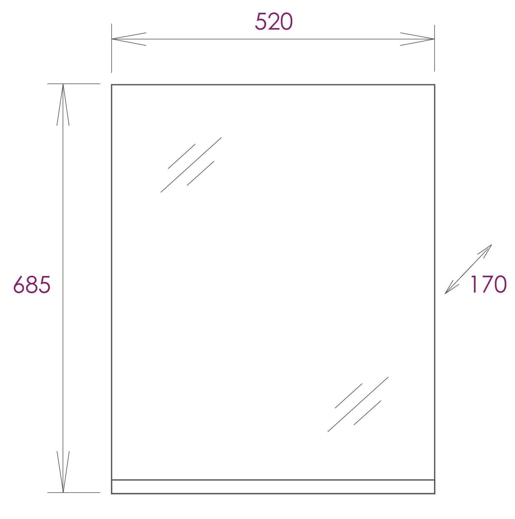 Размер зеркала 52 х 17 х 70 см.