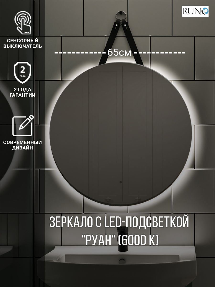 Зеркало RUNO с подсветкой D650 Руан Led (00-00001292) купить