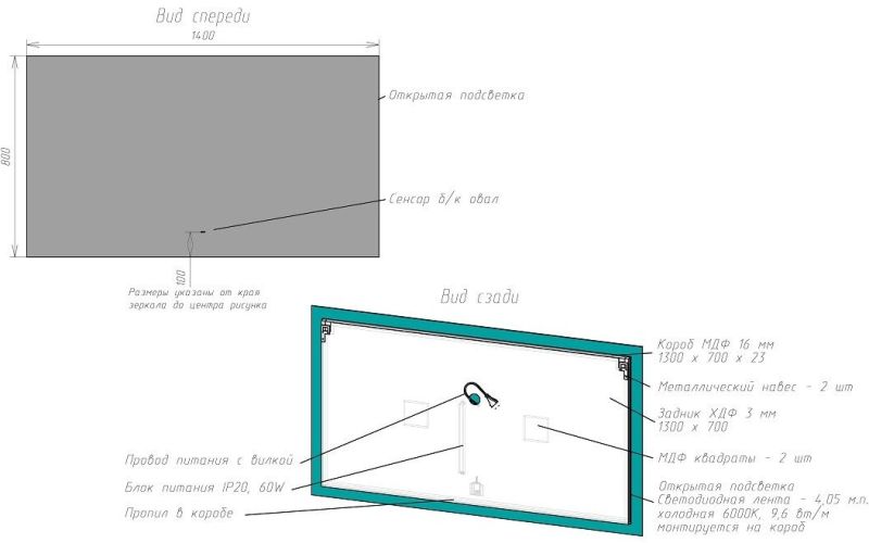 Тип:зеркало с подсветкой