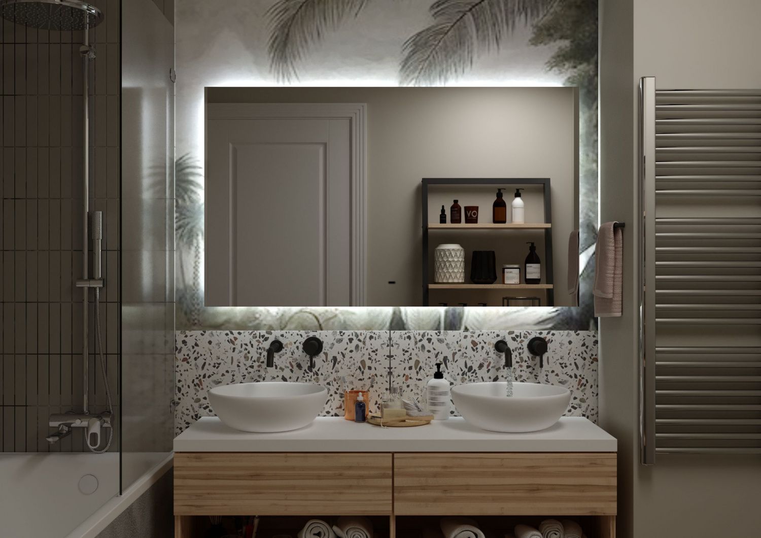 Зеркало, оснащенное светодиодной LED подсветкой с диммером .