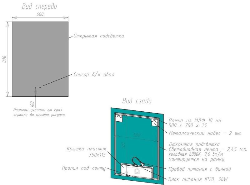 Оснащение: зеркало, крепеж, коробка, инструкция.