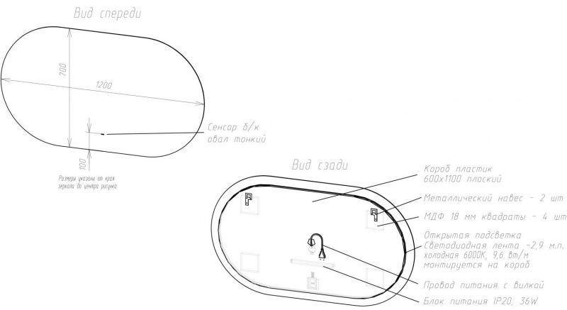 • Питание светильника от сети 220В через блок питания постоянного напряжения