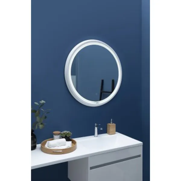 Круглое зеркало «Дакар» в небольшой стильной раме диаметром 80 см впишется в интерьер любой стилистики. Оно имеет нейтральный дизайн в стиле модерн и универсальную форму. Зеркало выполняет также функции светильника. По всей окружности зеркала рядом с белоснежной глянцевой рамой полоса LED-подсветки. Включается она с помощью сенсорного выключателя, расположенного прямо на зеркальном полотне. и обеспечивает приглушенный холодный свет. Функционально, удобно, эстетично