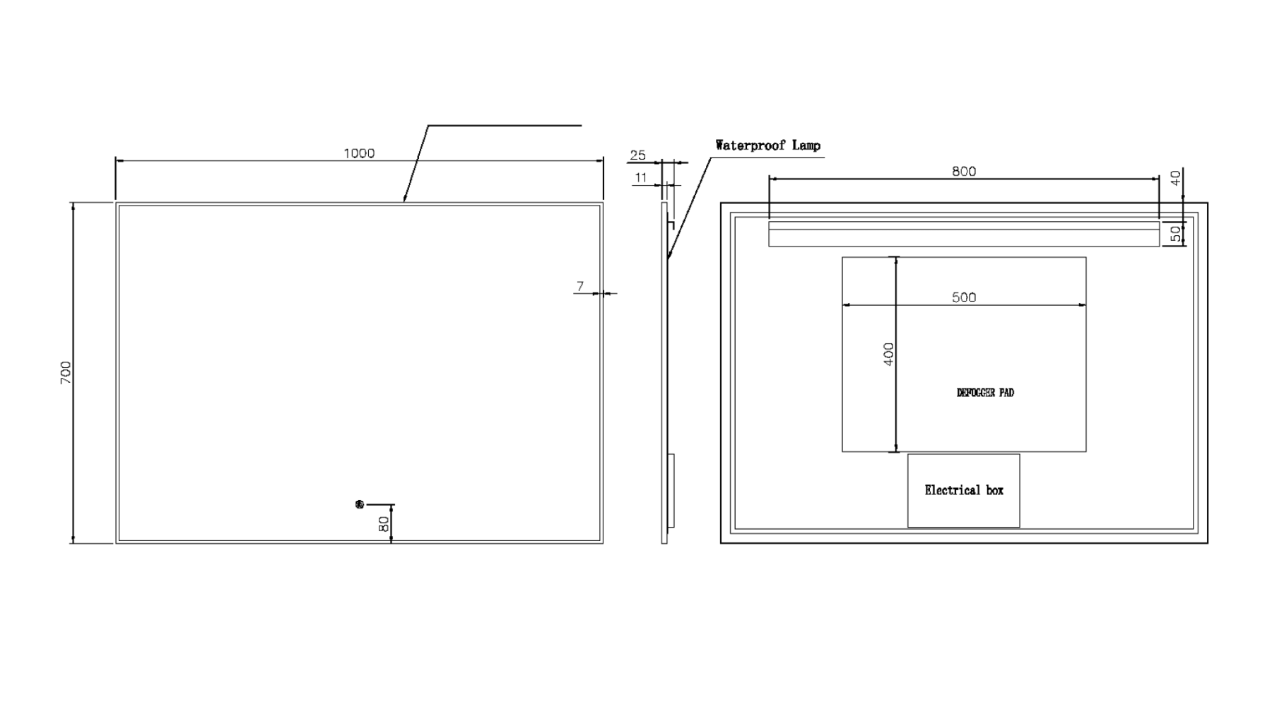 Размерный ряд от 80см до 140см. Каждое зеркало оборудовано тыльной подсветкой