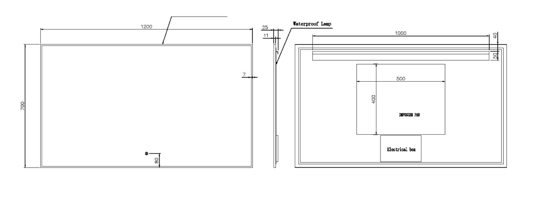 Размерный ряд от 80см до 140см. Каждое зеркало оборудовано тыльной подсветкой
