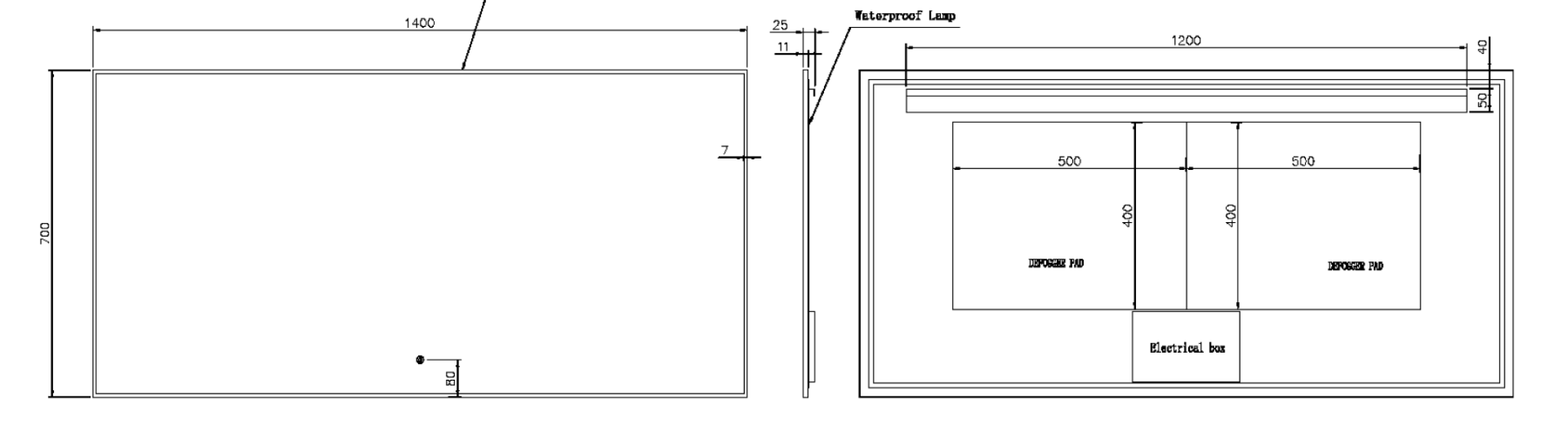 Размерный ряд от 80см до 140см. Каждое зеркало оборудовано тыльной подсветкой