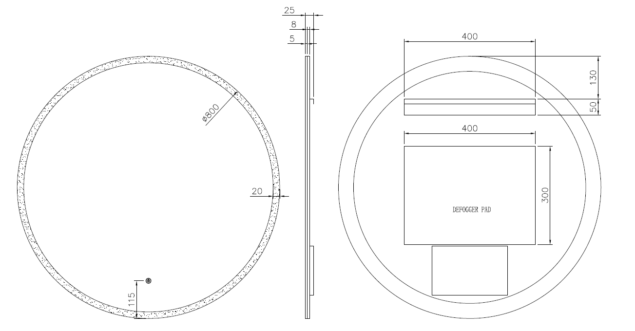 Размерный ряд от 80см до 140см. Каждое зеркало оборудовано тыльной подсветкой