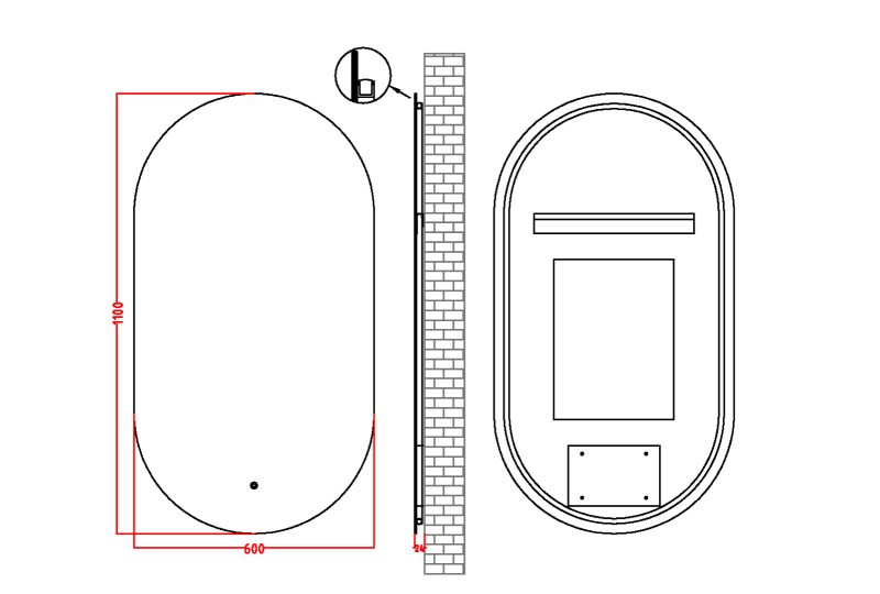 Размерный ряд от 80см до 140см. Каждое зеркало оборудовано тыльной подсветкой