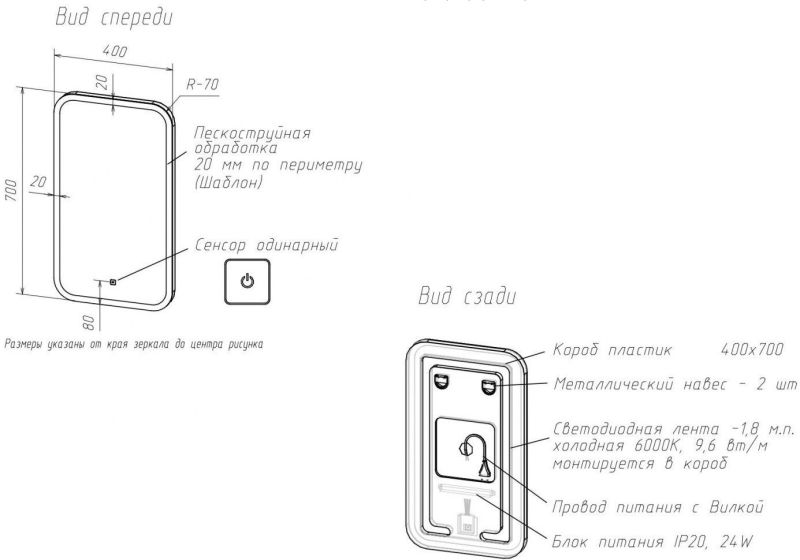 • Зеркальный отступ по периметру зеркала