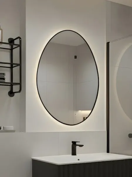 Ореольная подсветка подчеркивает форму зеркала и создает эффект парения.