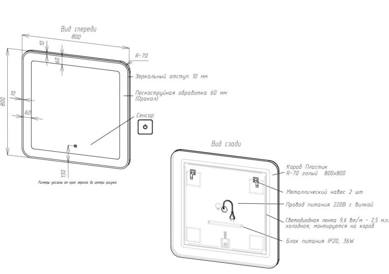 • Толщина зеркального отступа: 10 мм