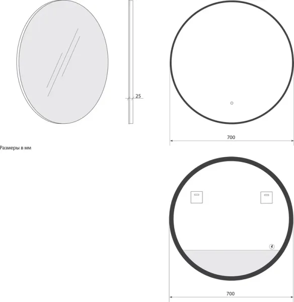 Зеркало с подсветкой ArtMax Sanremo AM-San-700-DS-F-Nero 70 см чёрный