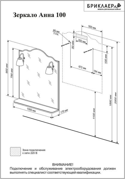 Зеркало с подсветкой Бриклаер Анна 4627125411342 100 см белый
