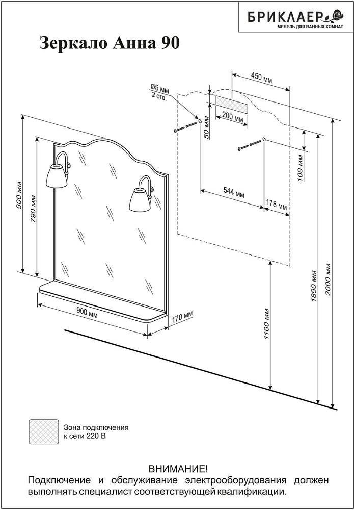 Зеркало с подсветкой Бриклаер Анна 4627125411380 90 см белый