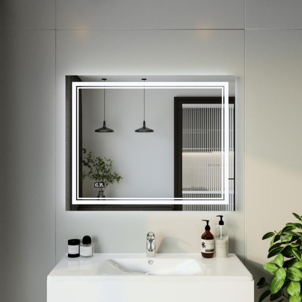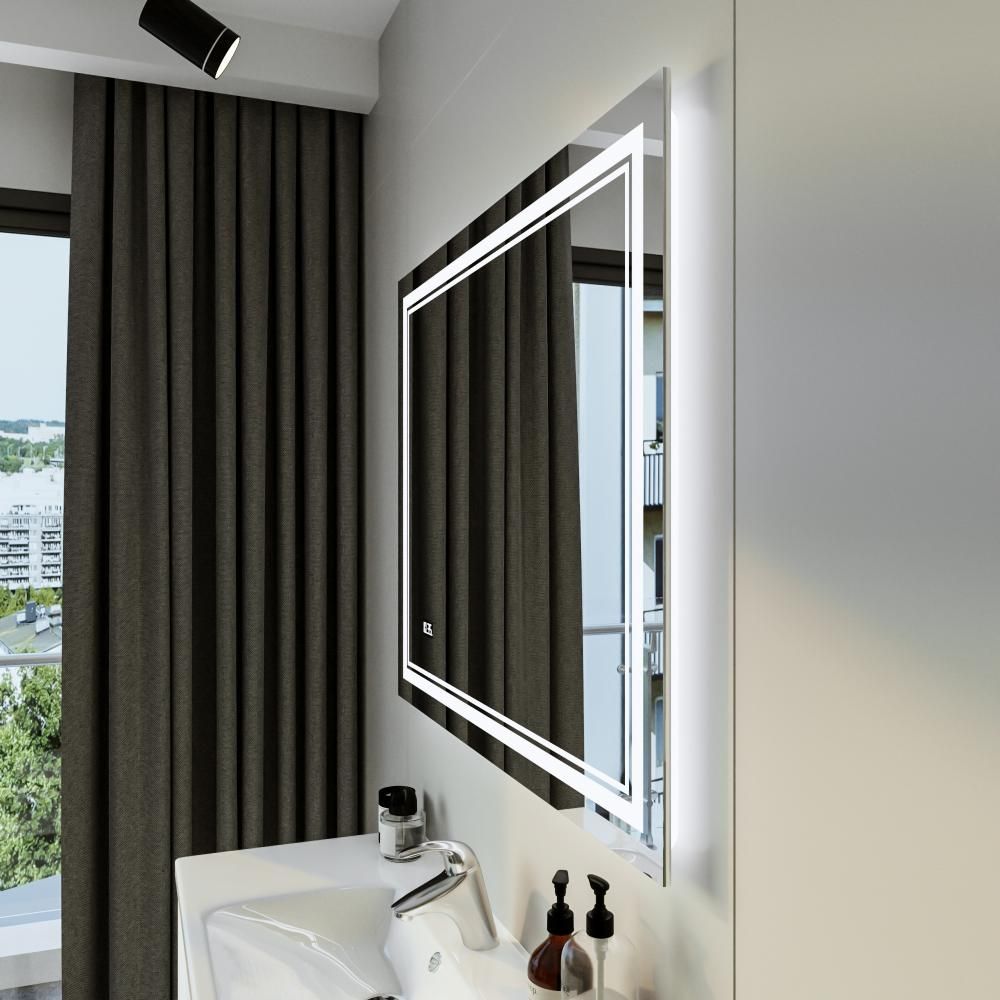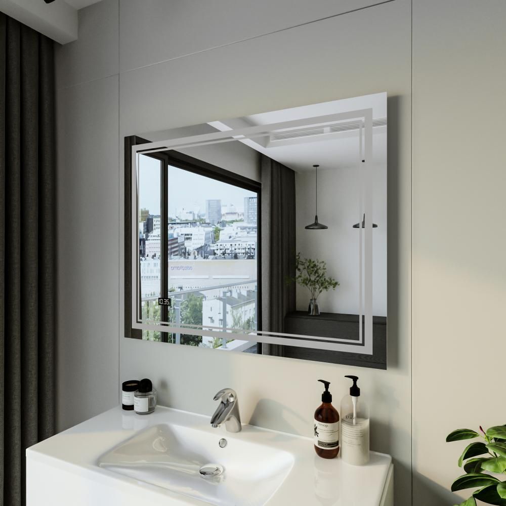 Зеркало с подсветкой Бриклаер Эстель-2 4627125414312 с часами 100 см на взмах руки купить