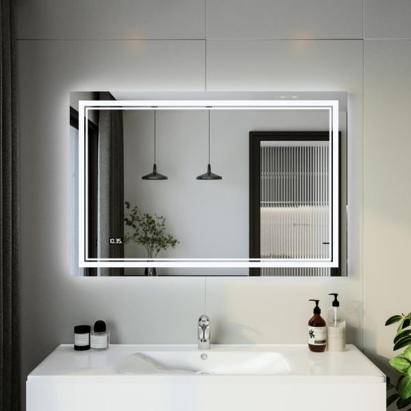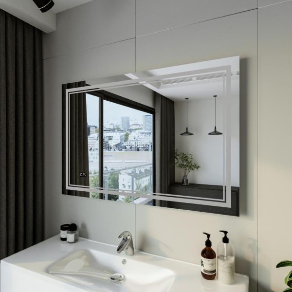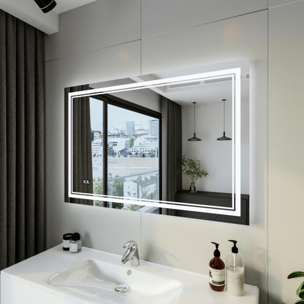 Зеркало с подсветкой Бриклаер Эстель-2 4627125414336 с часами 120 см на взмах руки купить