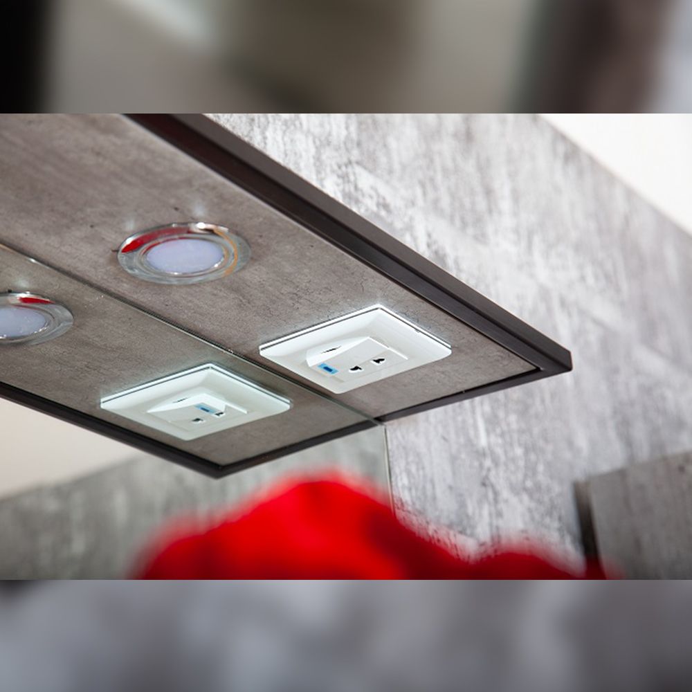 Его чистые линии и сдержанная форма создают гармоничный контраст с отделкой стен и сантехникой, добавляя комнате ощущение простоты и элегантности.