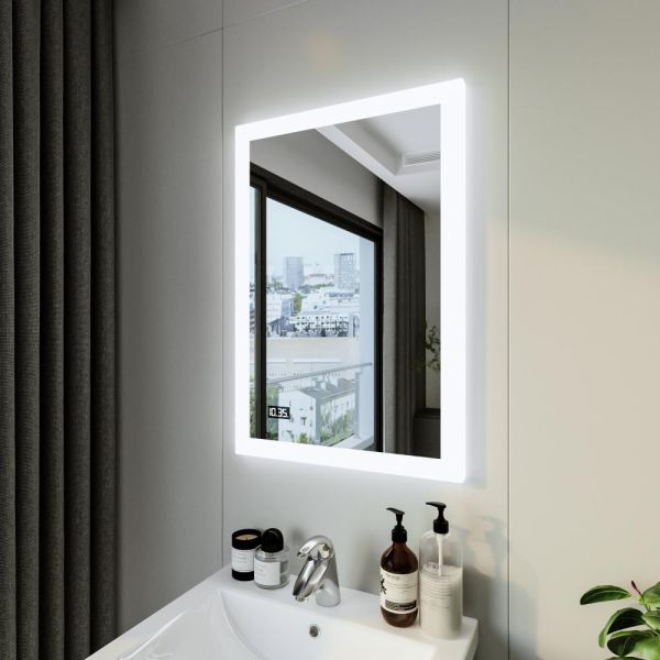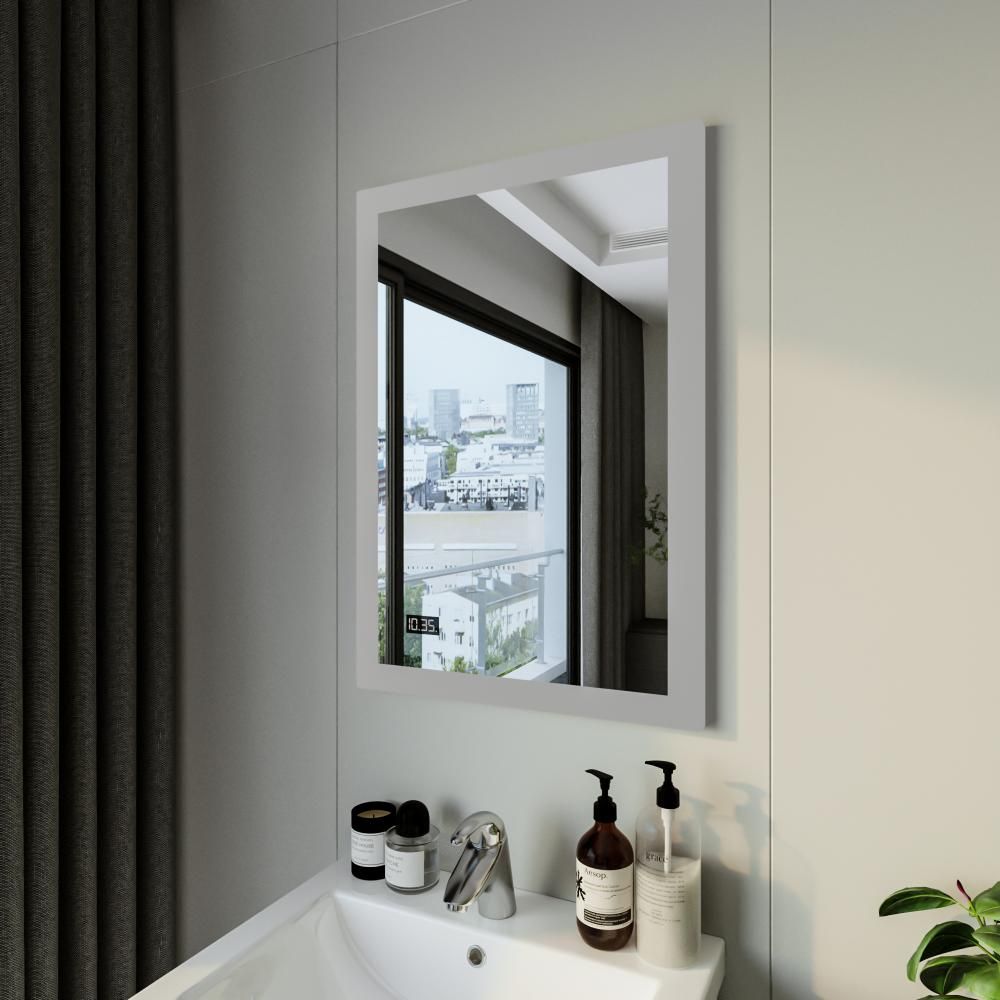 Зеркало с подсветкой Бриклаер Вега 4627125414206 с часами 55 см на взмах руки купить