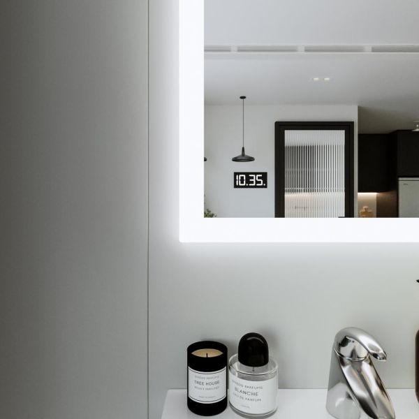Зеркало с подсветкой Бриклаер Вега 4627125414206 с часами 55 см на взмах руки
